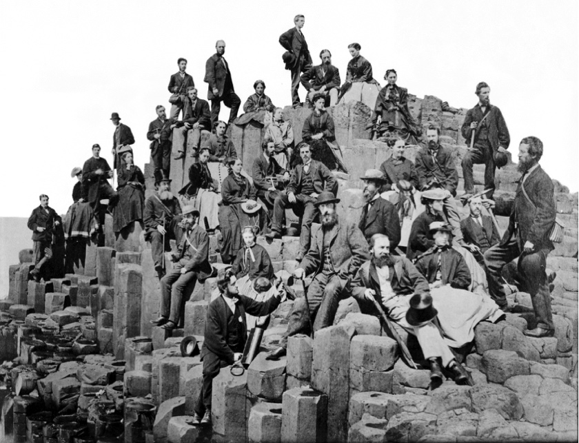 Club members on The Honeycomb at the Giant's Causeway, Co,. Antrim. This famous image was taken on Thursday morning 11th June 1868 by 'the well known photographic artist, Mr Mack of Coleraine'.